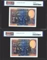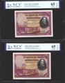 50 Pesetas. 15 de Agosto de 1925. Pareja correlativa. Serie E. (Edifil 2021: 354, Pick: 75b). Apresto original. SC. Encapsulados NCV65TQP, ambos.