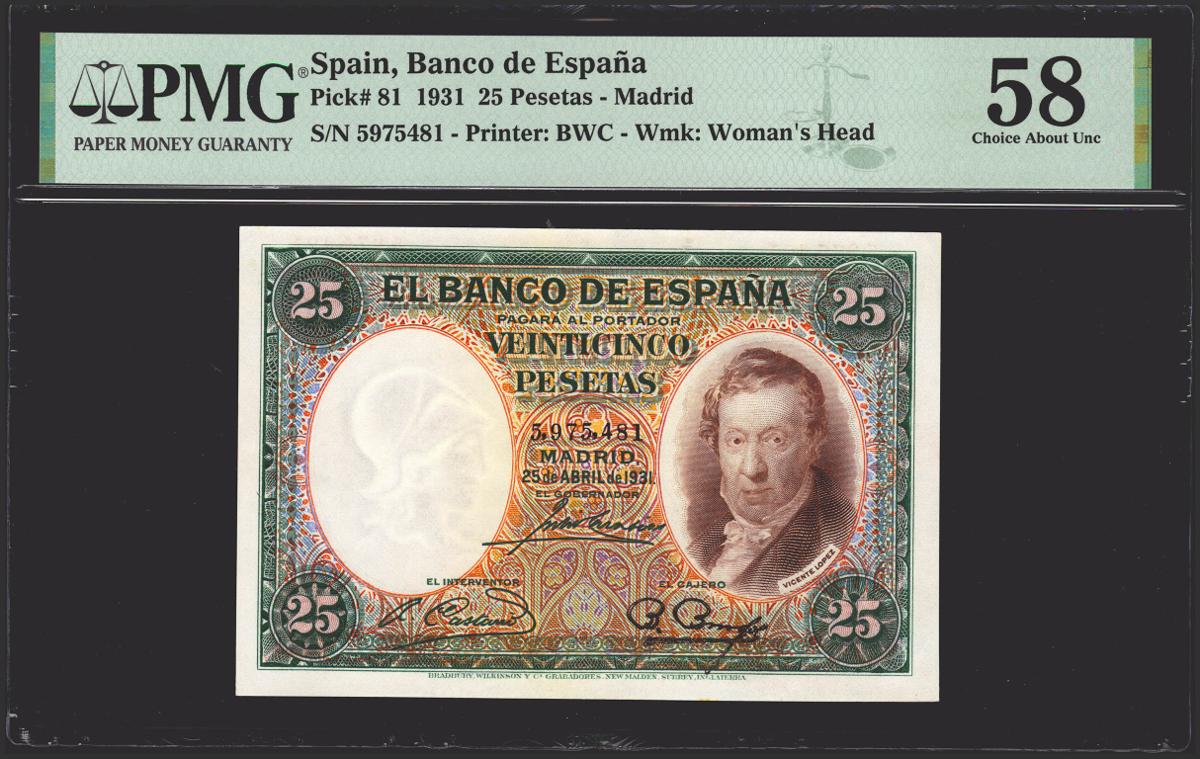 25 Pesetas. 25 de Abril de 1931. Sin serie. (Edifil 2021: 358, Pick: 81). EBC++. Encapsulado PMG58.