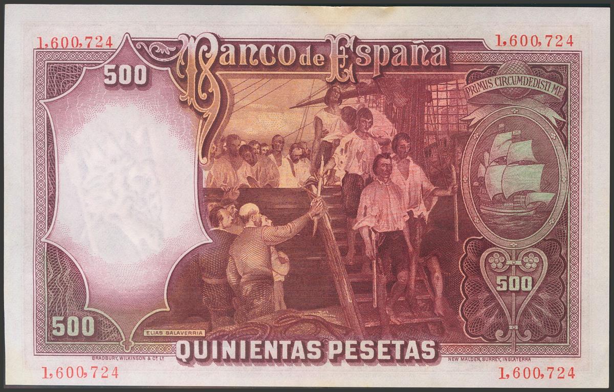 500 Pesetas. 25 de Abril de 1931. Sin serie. (Edifil 2017: 361). Conserva todo su apresto original, manchitas en el margen superior. EBC+.