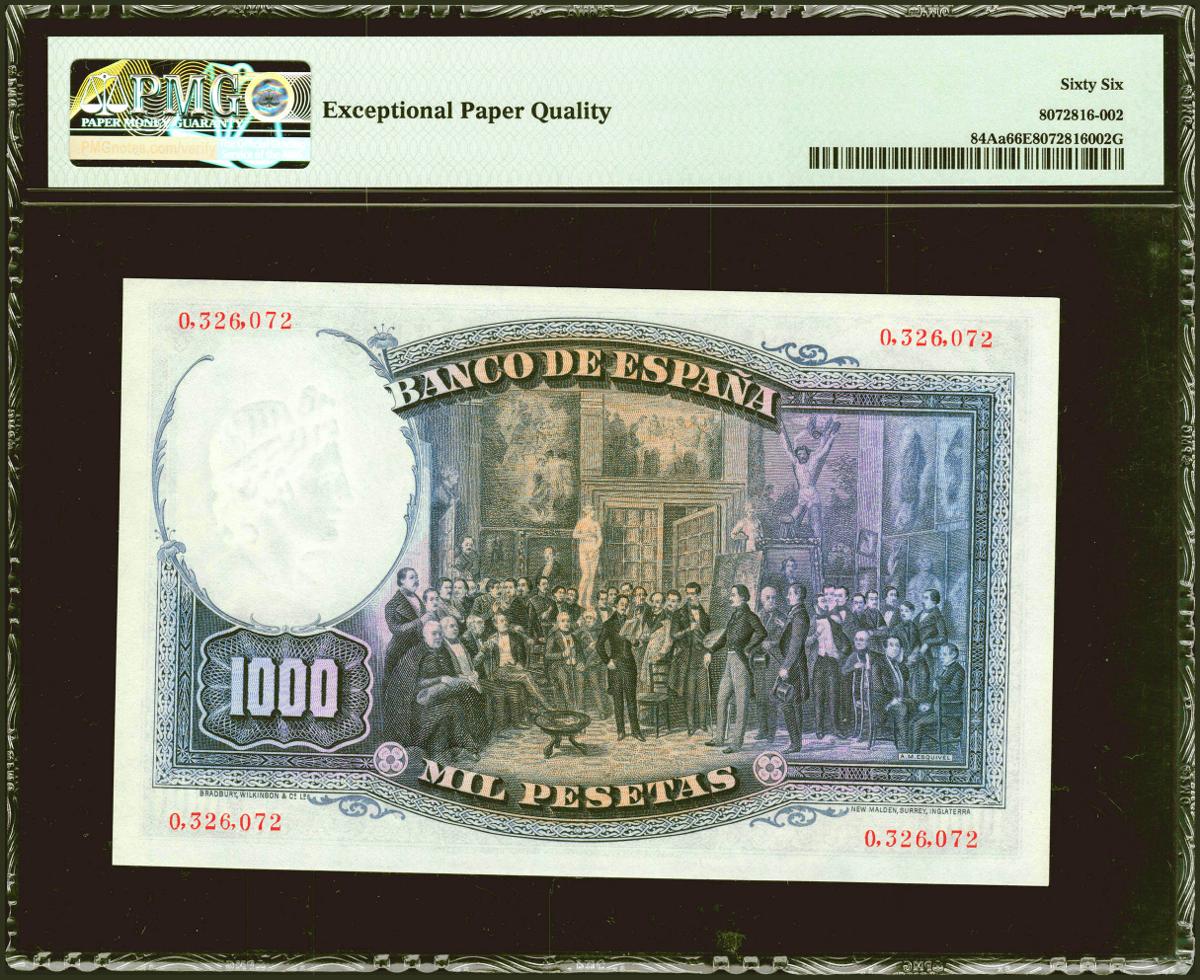 1000 Pesetas. 25 de Abril de 1931. Sin serie. (Edifil 2021: 362, Pick: 84Aa). Extraordinariamente raro en esta calidad, apresto original. SC. Encapsulado PMG66EPQ.