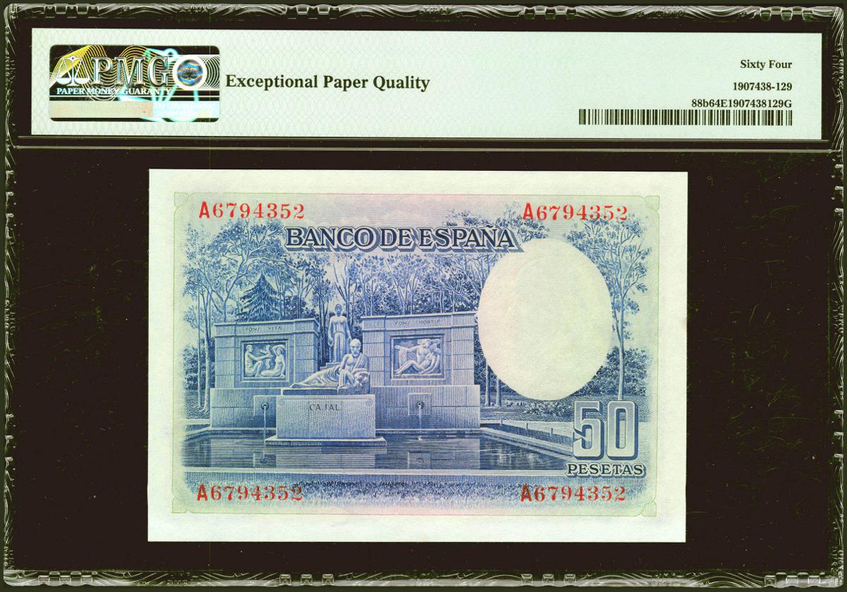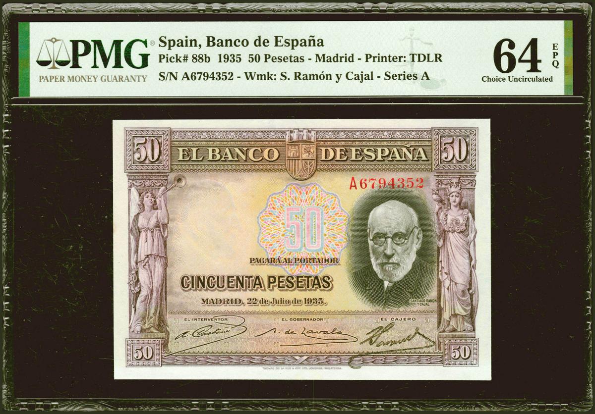 50 Pesetas. 22 de Julio de 1935. Serie A. (Edifil 2021: 366a). Apresto original. SC. Encapsulado PMG64EPQ.