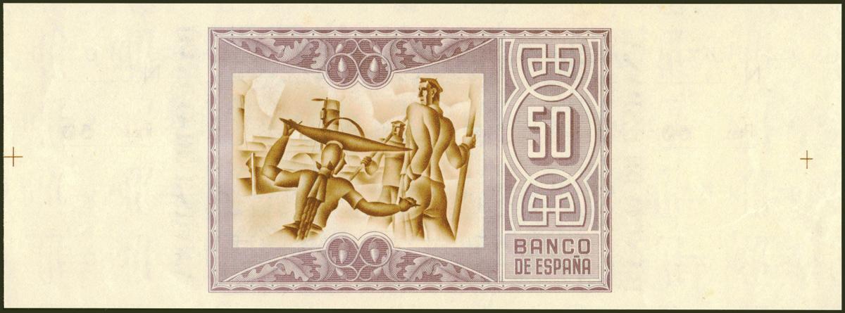 50 Pesetas. 1 de Enero de 1937. Sucursal de Bilbao, antefirma Banco de Vizcaya. Sin serie y sin numeración, con ambas matrices. (Edifil 2021: 389b). Apresto original. EBC+.