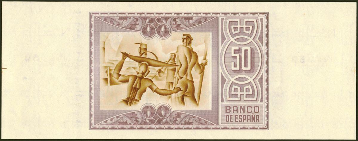 50 Pesetas. 1 de Enero de 1937. Sucursal de Bilbao, antefirma Banco Ahorros Vizcaína. Sin serie y sin numeración, con ambas matrices. (Edifil 2021: 389f). Apresto original. SC-.