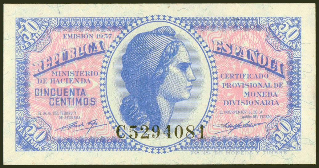 50 Céntimos. 1937. Serie C, última serie emitida. (Edifil 2021: 391a). Apresto original. SC-.