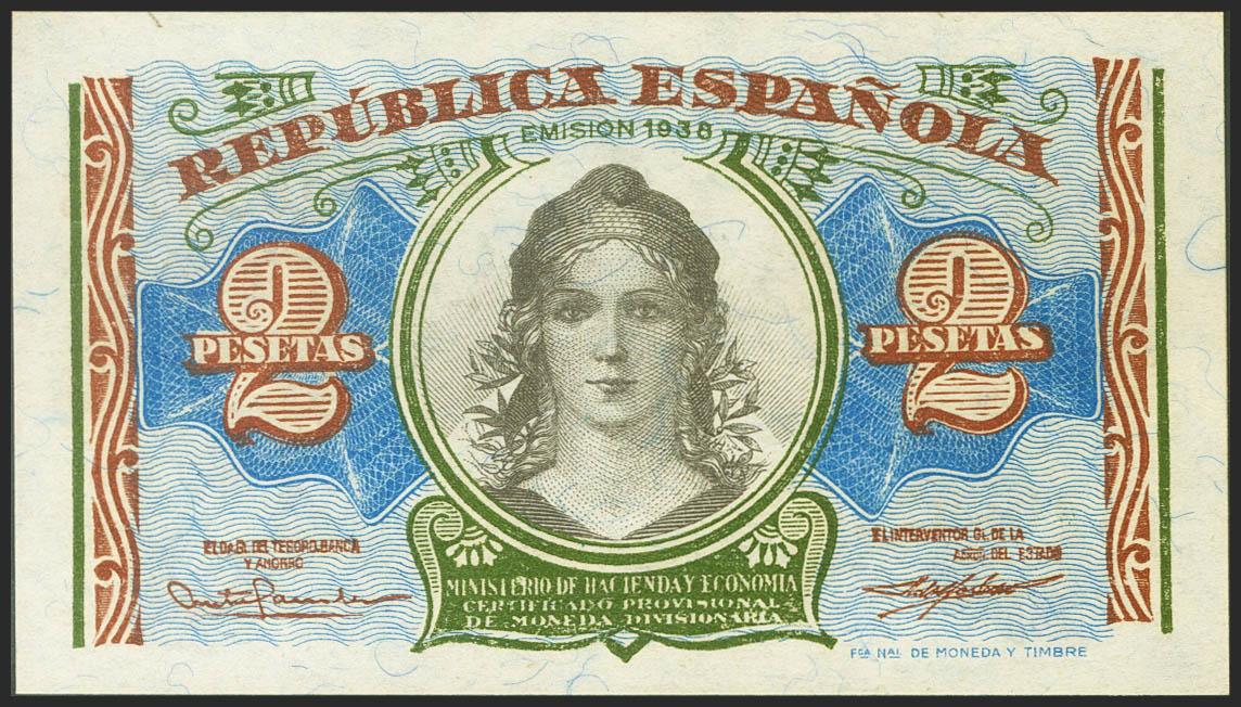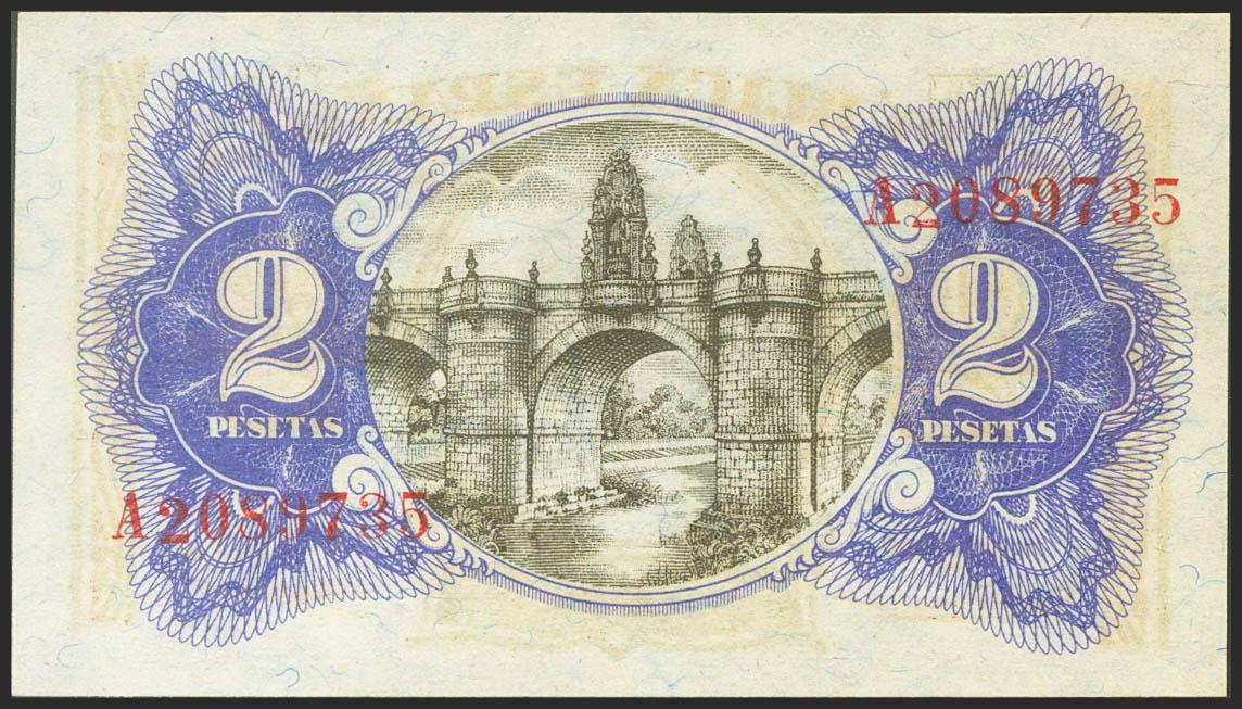 2 Pesetas. 1937. Ministerio de Hacienda. Serie A. (Edifil 2021: 393). Apresto original. SC.