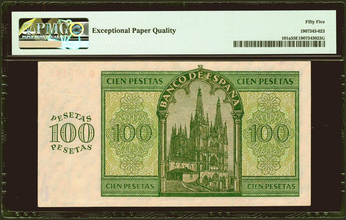 100 Pesetas. 21 de Noviembre de 1936. Serie Q. (Edifil 2021: 421a, Pick: 101a). Apresto original. EBC+. Encapsulado PMG55EPQ.
