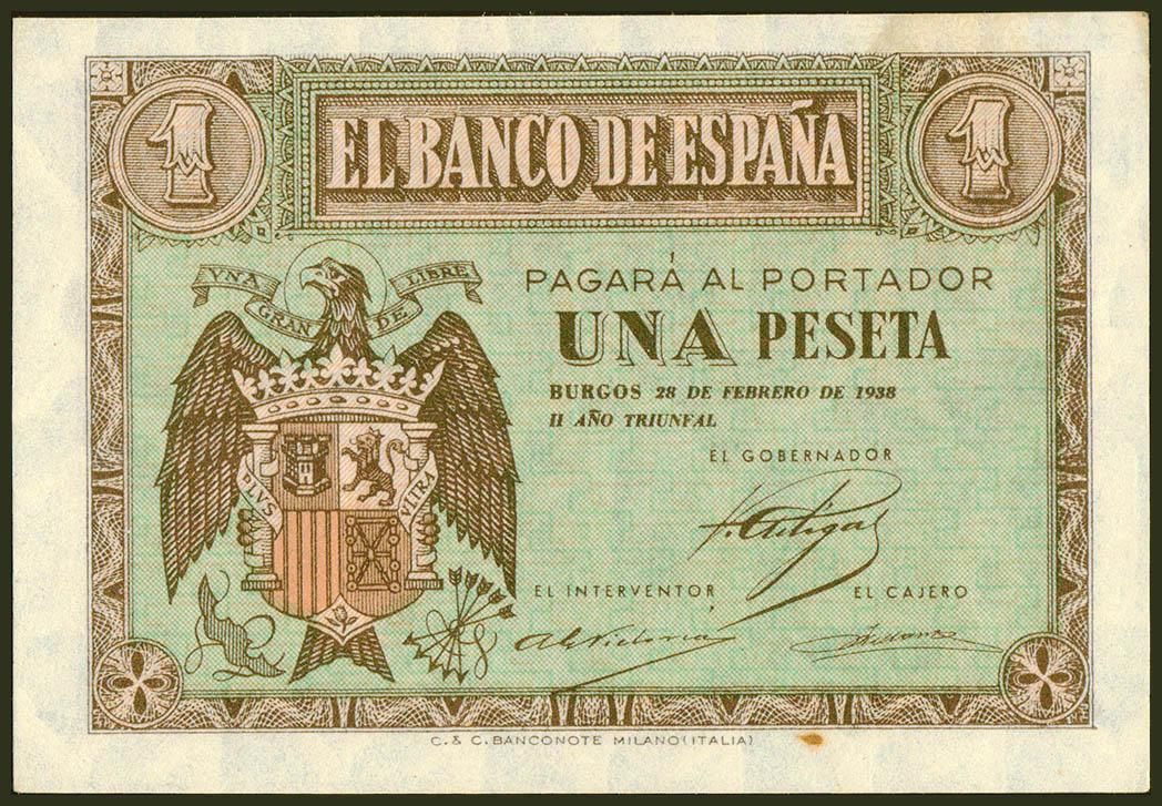 1 Peseta. 28 de Febrero de 1938. Serie C. (Edifil 2021: 427a). Conserva gran parte de su apresto original. SC--.