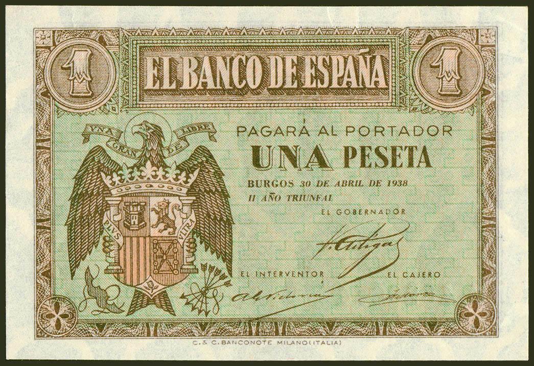1 Peseta. 30 de Abril de 1938. Serie A. (Edifil 2021: 428). Conserva todo su apresto original. SC-.