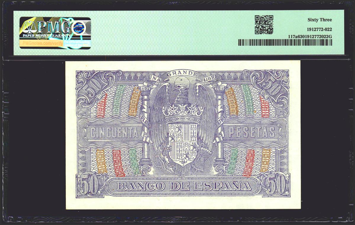 50 Pesetas. 9 de Enero de 1940. Serie D. (Edifil 2021: 437a, Pick: 117a). SC. Encapsulado PMG63.
