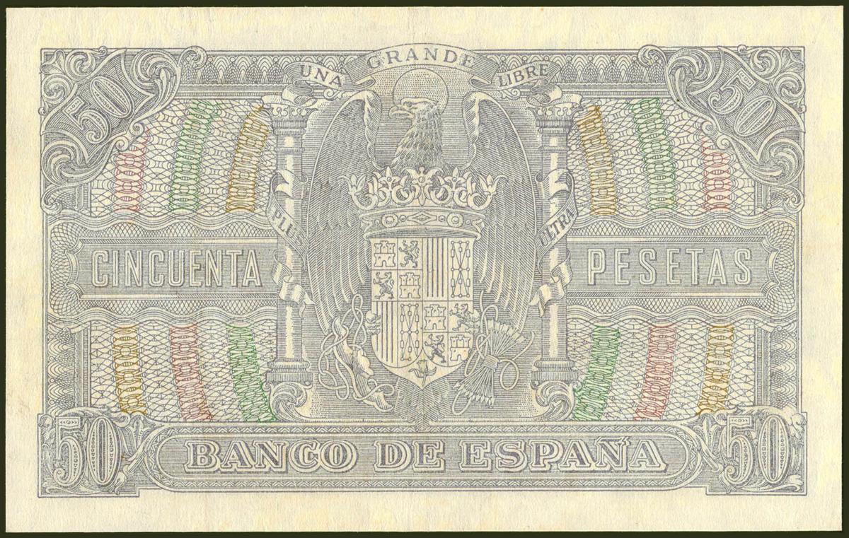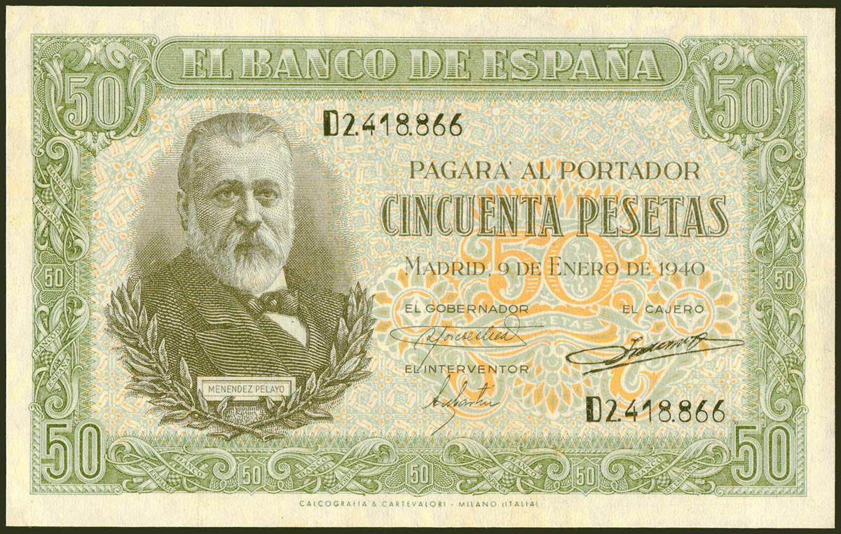 50 Pesetas. 9 de Enero de 1940. Serie D. (Edifil 2021: 437a). Conserva gran parte de su apresto original. EBC.