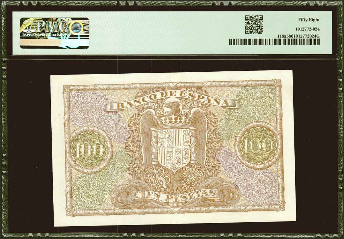 100 Pesetas. 9 de Enero de 1940. Serie A. (Edifil 2021: 438, Pick: 118a). EBC++. Encapsulado PMG58.