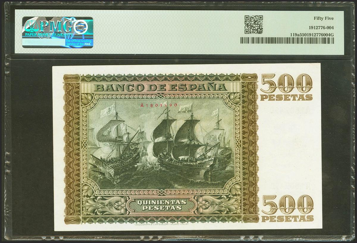 500 Pesetas. 9 de Enero de 1940. Serie A. (Edifil 2017: 439). Muy raro en esta calidad. EBC+. Encapsulado PMG55.
