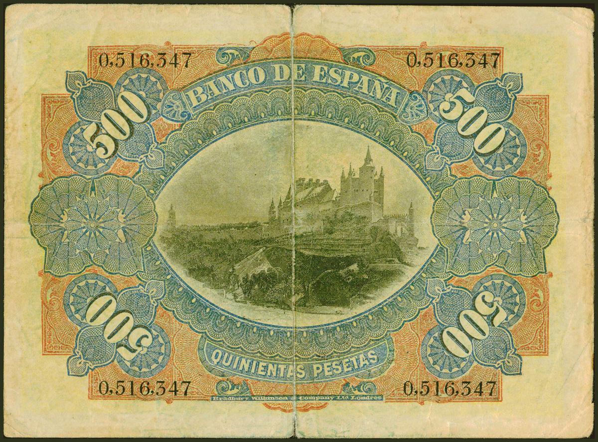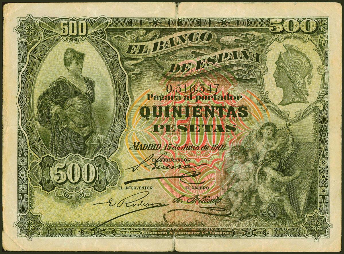 500 Pesetas. 15 de Junio de 1907. Sin serie. (Edifil 2021: 321). Inusual. BC.