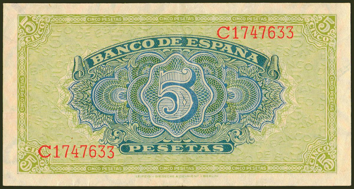 5 Pesetas. 4 de Septiembre de 1940. Serie C. (Edifil 2021: 443a). Conserva gran parte de su apresto original. EBC.