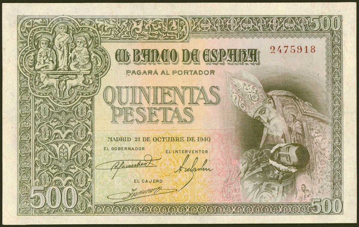 500 Pesetas. 21 de Octubre de 1940. Sin serie. (Edifil 2021: 444). MBC+.