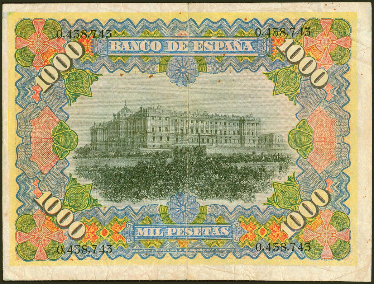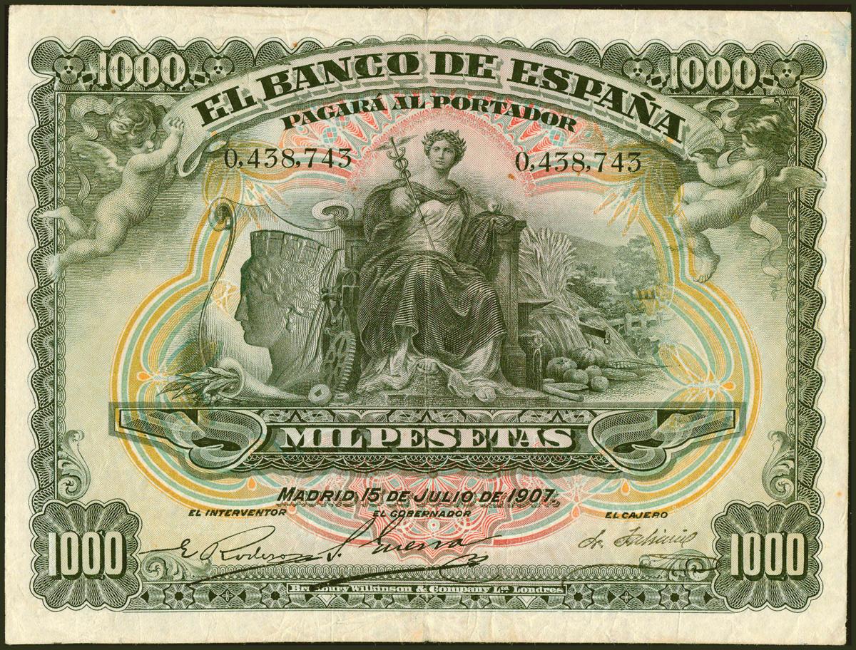 1000 Pesetas. 15 de Julio de 1907. Sin serie. (Edifil 2021: 322). Inusual. BC+.