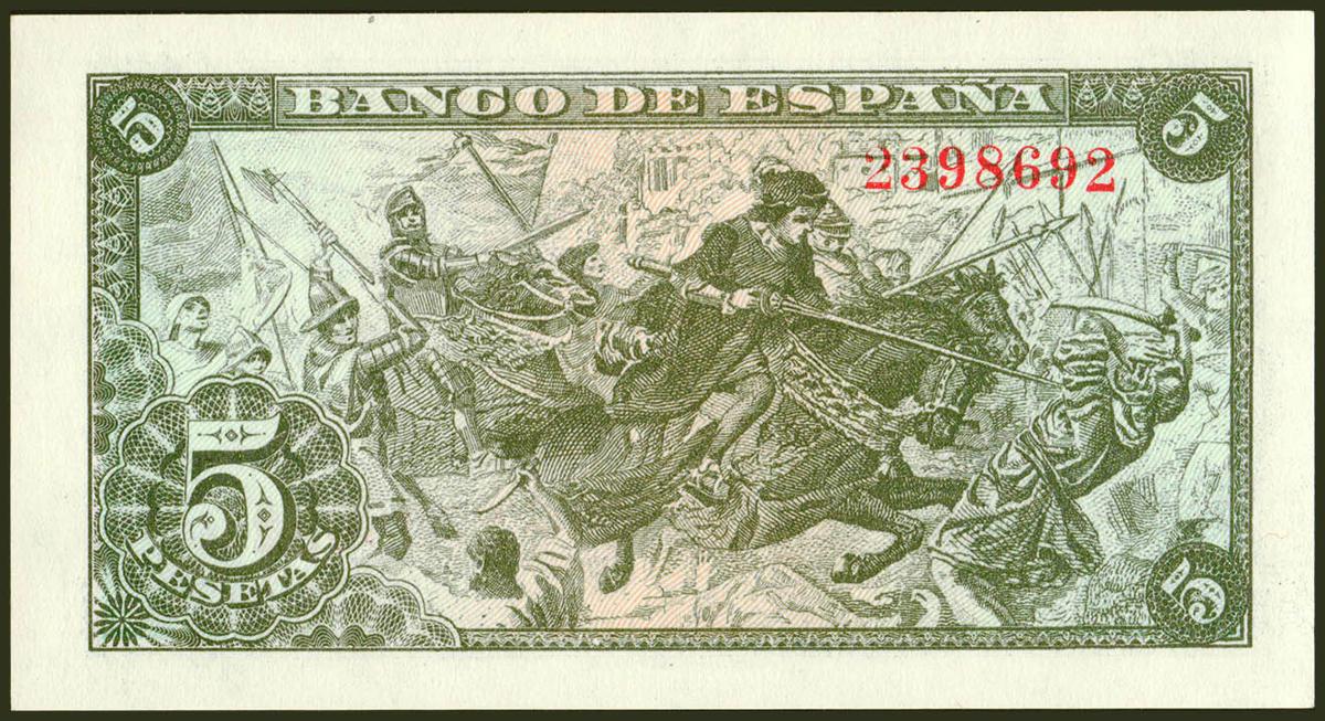 5 Pesetas. 15 de Junio de 1945. Sin serie. (Edifil 2021: 449). Apresto original. SC.