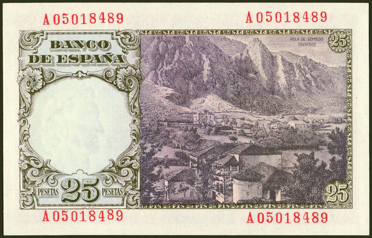 25 Pesetas. 19 de Febrero de 1946. Serie A. (Edifil 2021: 450a). Apresto original. SC.