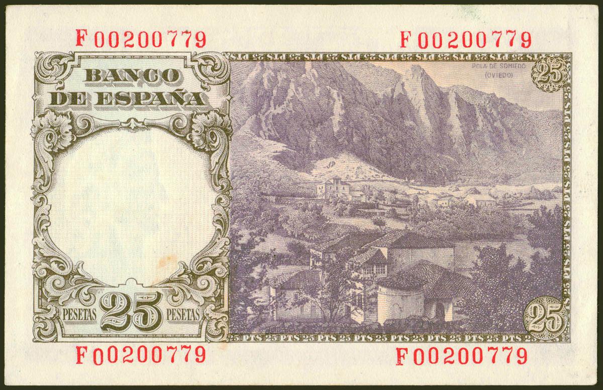25 Pesetas. 19 de Febrero de 1946. Serie F. (Edifil 2021: 450a). Conserva gran parte de su apresto original. EBC+.