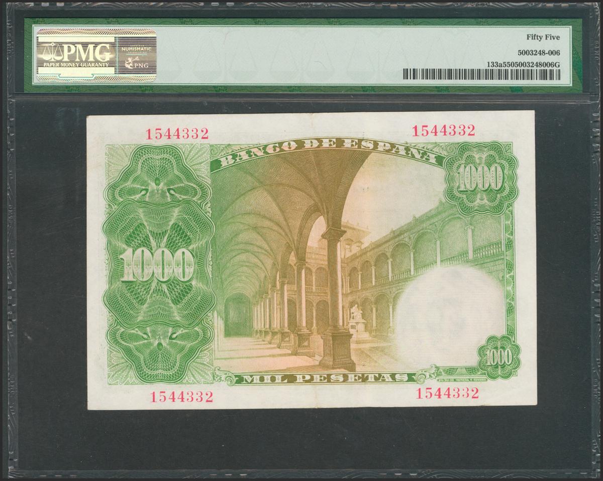 1000 Pesetas. 19 de Febrero de 1946. Sin serie. (Edifil 2021: 453). Raro así. EBC+. Encapsulado PMG55.