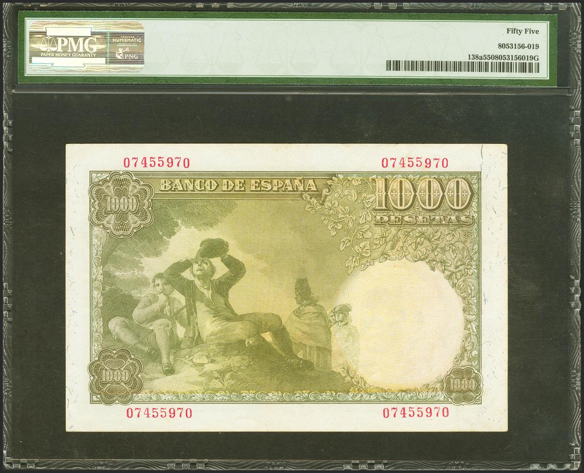 1000 Pesetas. 4 de Noviembre de 1949. Sin serie. (Edifil 2021: 458, Pick: 138a). Inusual. EBC++. Encapsulado PMG55.
