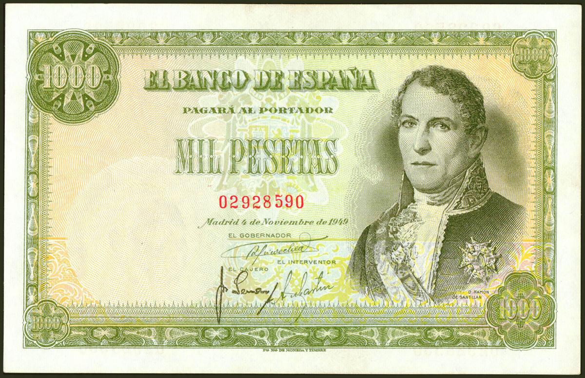 1000 Pesetas. 4 de Noviembre de 1949. Sin serie. (Edifil 2021: 458). Conserva parte del apresto original. EBC.