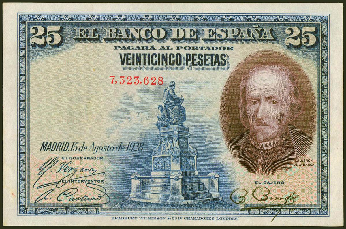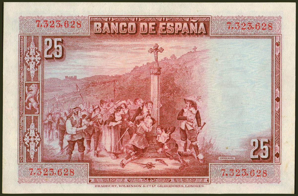 25 Pesetas. 15 de Agosto de 1928. Sin serie. (Edifil 2021: 328). Inusual. MBC.