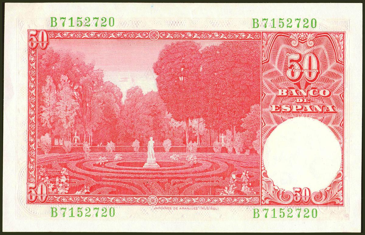 50 Pesetas. 31 de Diciembre de 1951. Serie B. (Edifil 2021: 462a). Conserva todo su apresto original. SC--.