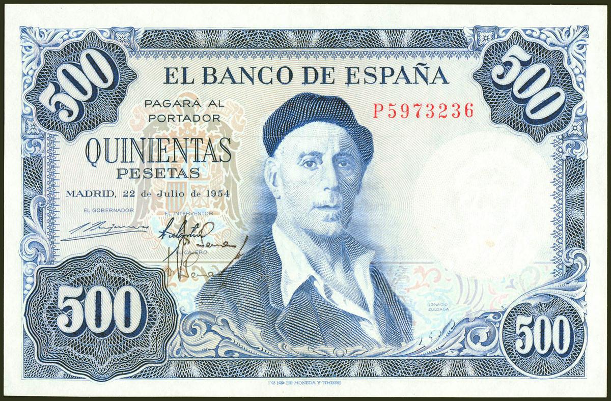 500 Pesetas. 22 de Julio de 1954. Serie P. (Edifil 2021: 468b). Conserva parte de su apresto original. EBC.