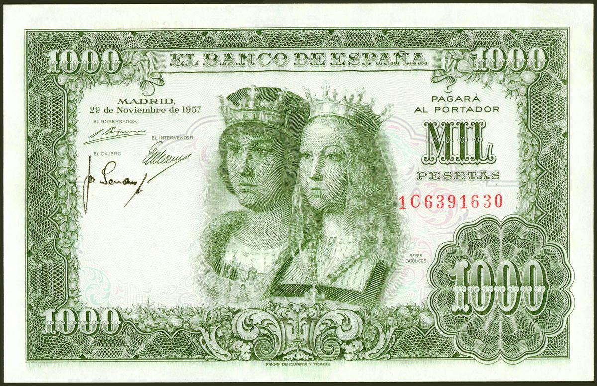1000 Pesetas. 29 de Noviembre de 1957. Serie 1C. (Edifil 2021: 469b). Conserva todo su apresto original. SC-.