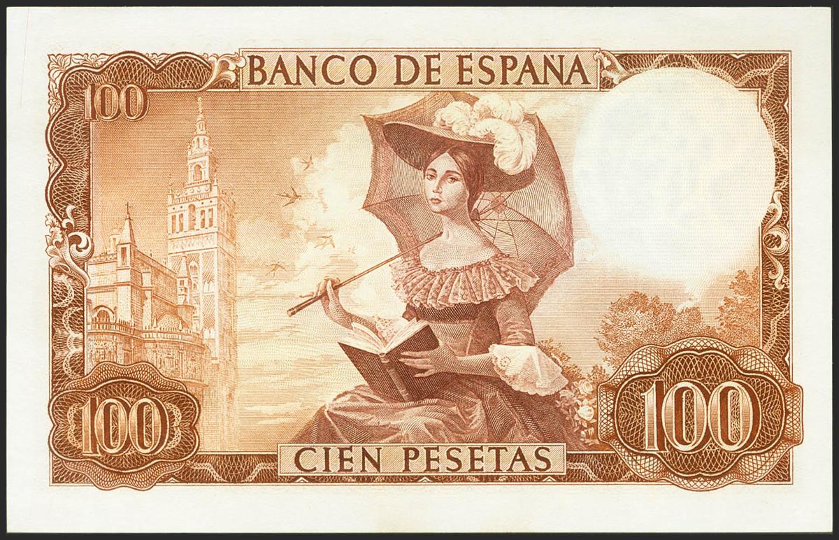 100 Pesetas. 19 de Noviembre de 1965. Serie A. (Edifil 2021: 470a). Conserva parte de su apresto original. EBC+.