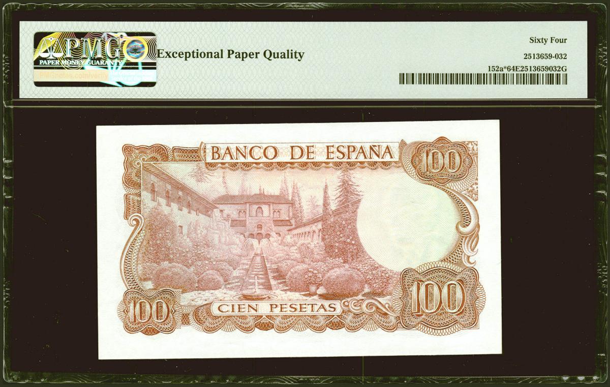 100 Pesetas. 17 de Noviembre de 1970. Serie especial 9C. (Edifil 2021: 472d, Pick: 152a*). Apresto original. SC. Encapsulado PMG64EPQ.