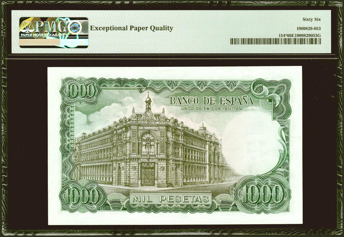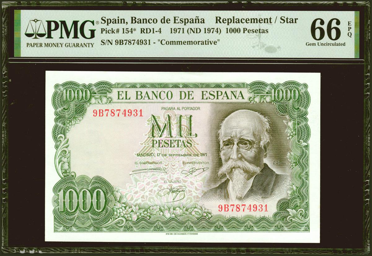 1000 Pesetas. 17 de Septiembre de 1971. Serie especial 9B. (Edifil 2021: 474d, Pick: 154*). Rara serie, especialmente en esta excepcional calidad, apresto original. SC. Encapsulado PMG66EPQ.