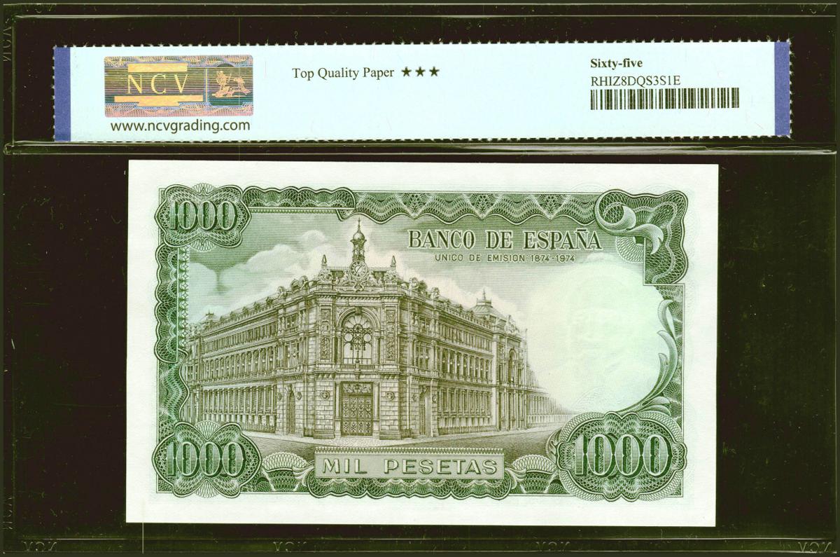 1000 Pesetas. 17 de Septiembre de 1971. Serie 5M. (Edifil 2021: 474c, Pick: 154). Inusual en esta calidad, apresto original. SC. Encapsulado NCV65TQP.