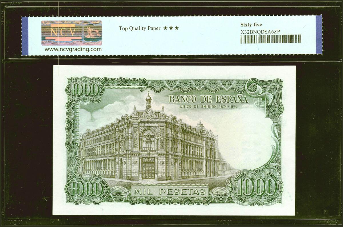 1000 Pesetas. 17 de Septiembre de 1971. Serie 6S. (Edifil 2021: 474c, Pick: 154). Inusual en esta calidad, apresto original. SC. Encapsulado NCV65TQP.