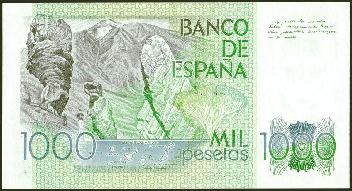 1000 Pesetas. 23 de Octubre de 1979. Serie especial 9D y numeración muy baja. (Edifil 2017: 477b). Muy raro, ondulación natural del proceso de fabricación (este es el único motivo de "quitarle" el SC) EBC+++.