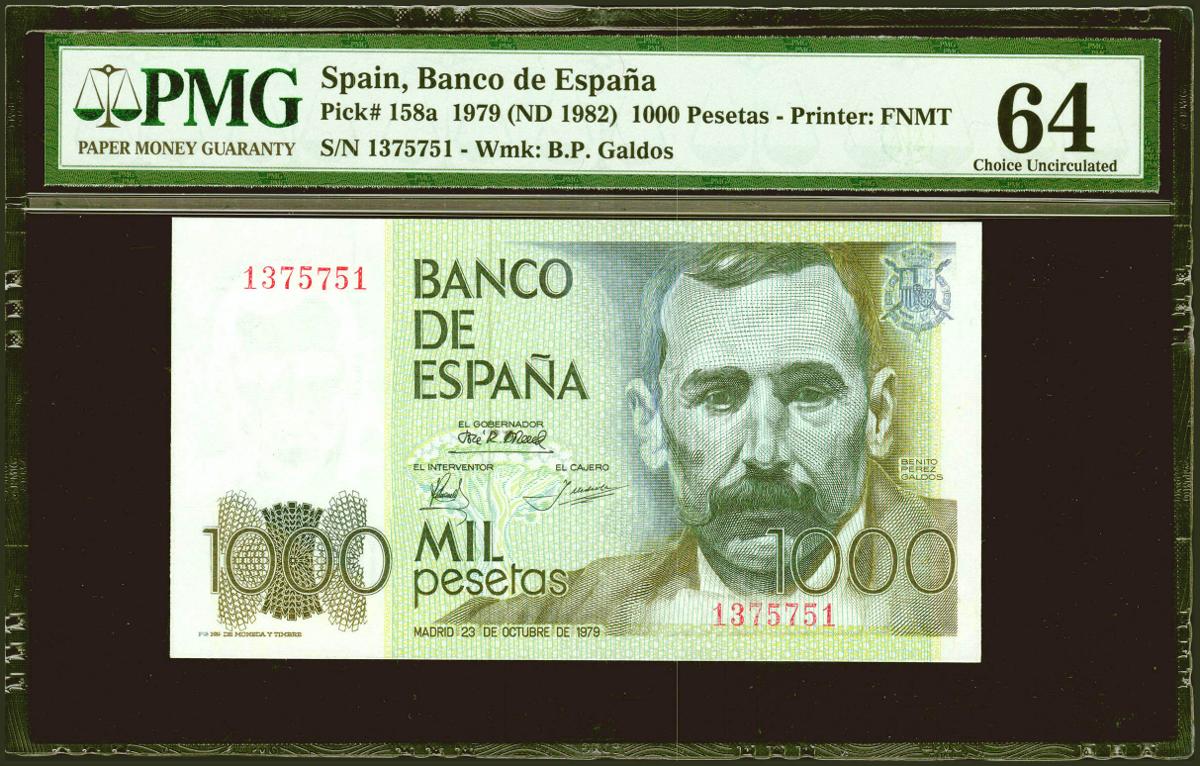 1000 Pesetas. 23 de Octubre de 1979. Sin serie. (Edifil 2021: 477, Pick: 158a). SC. Encapsulado PMG64.