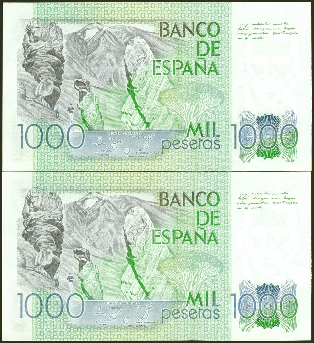 1000 Pesetas. 23 de Octubre de 1979. Pareja correlativa. Sin serie. (Edifil 2021: 477). SC.