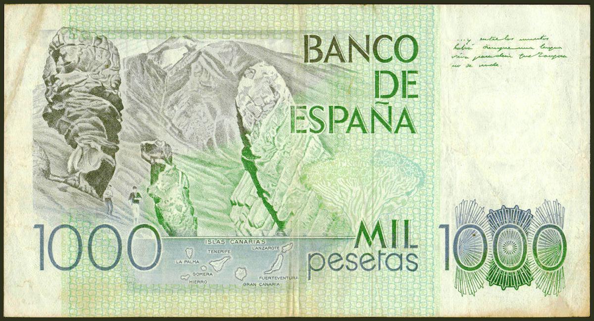 1000 Pesetas. 23 de Octubre de 1979. Error de guillotinado en la parte superior. Serie 6C. (Edifil 2021: 477a). MBC.