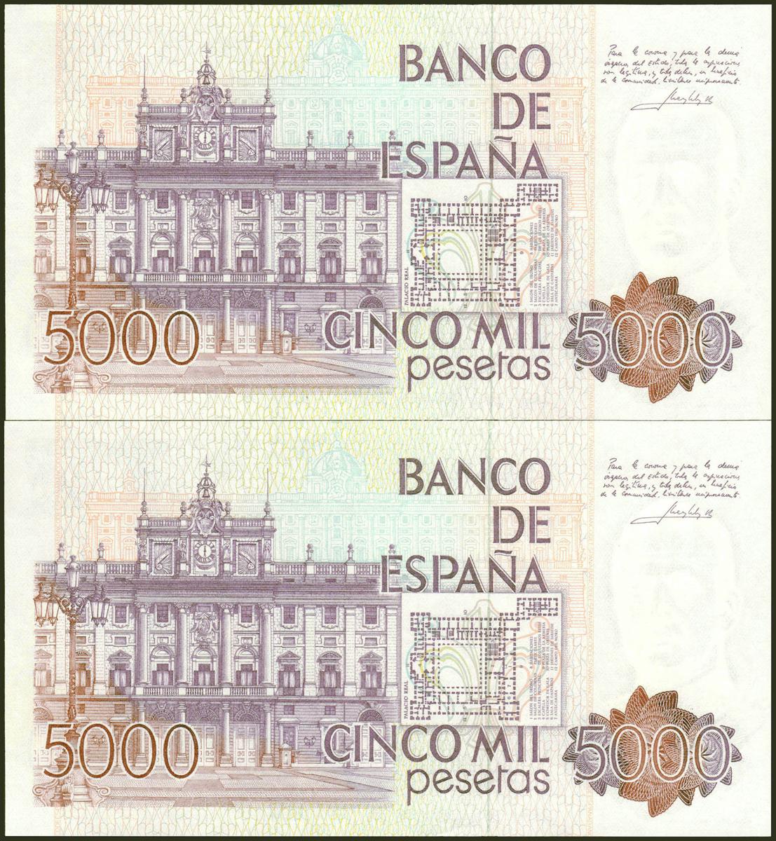 5000 Pesetas. 23 de Octubre de 1979. Pareja correlativa. Sin serie. (Edifil 2021: 478). SC.