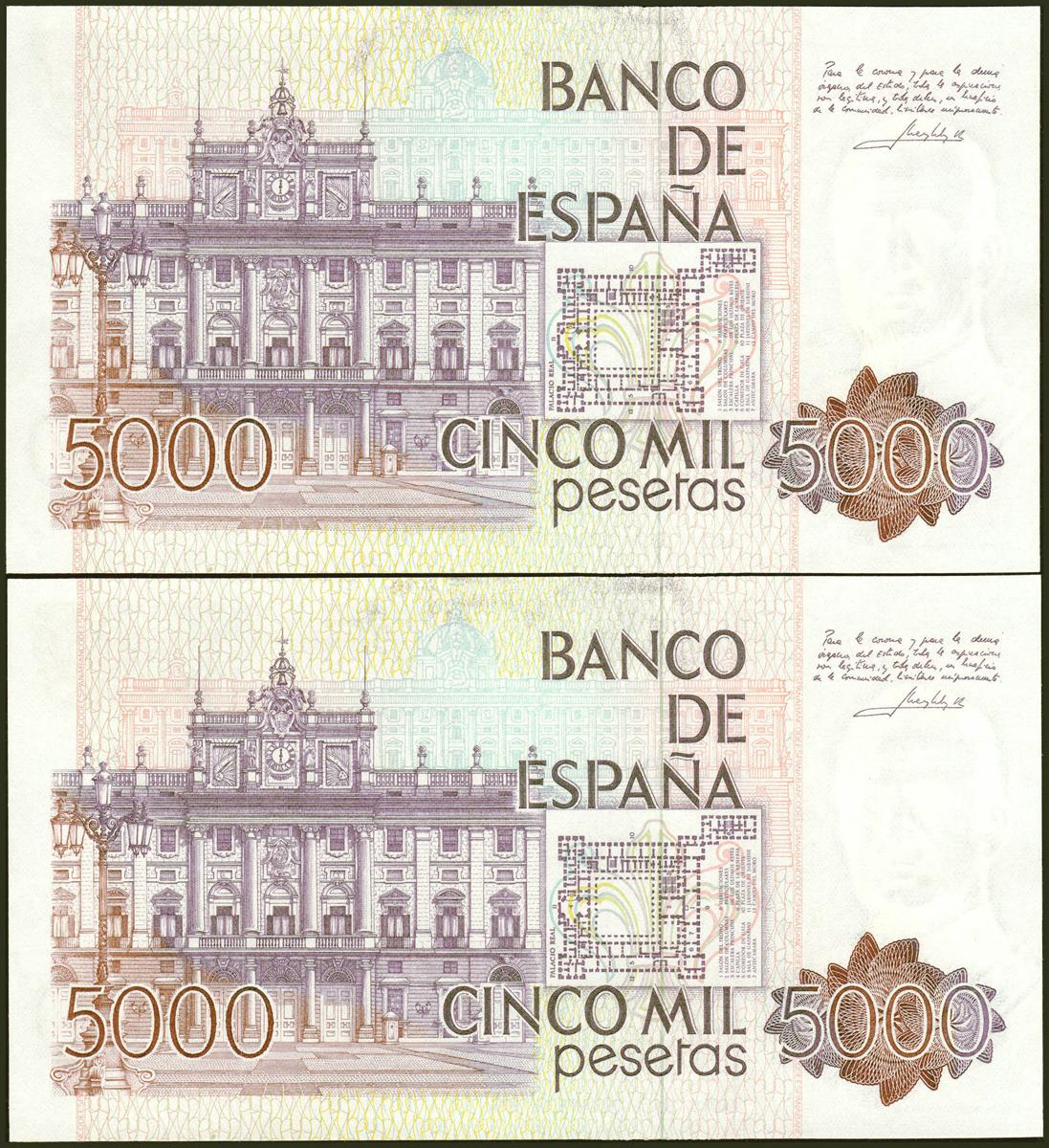 5000 Pesetas. 23 de Octubre de 1979. Pareja correlativa. Serie A. (Edifil 2021: 478a). SC.