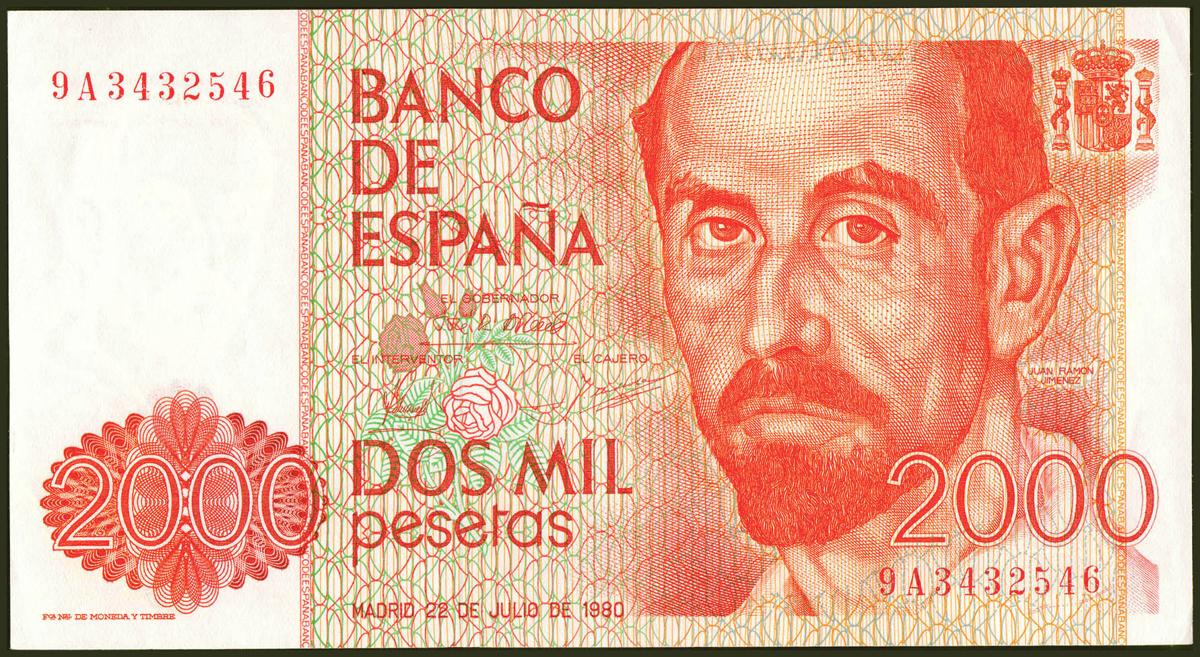 2000 Pesetas. 22 de Julio de 1980. Serie 9A. (Edifil 2017: 479b). Inusual. SC-.