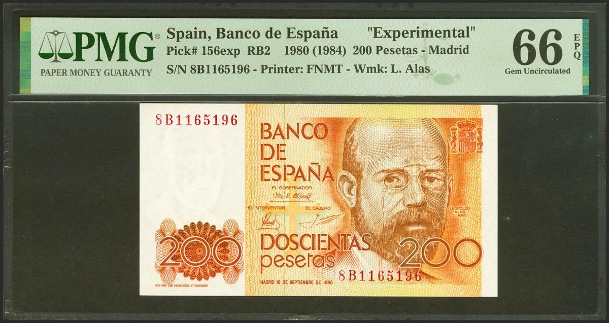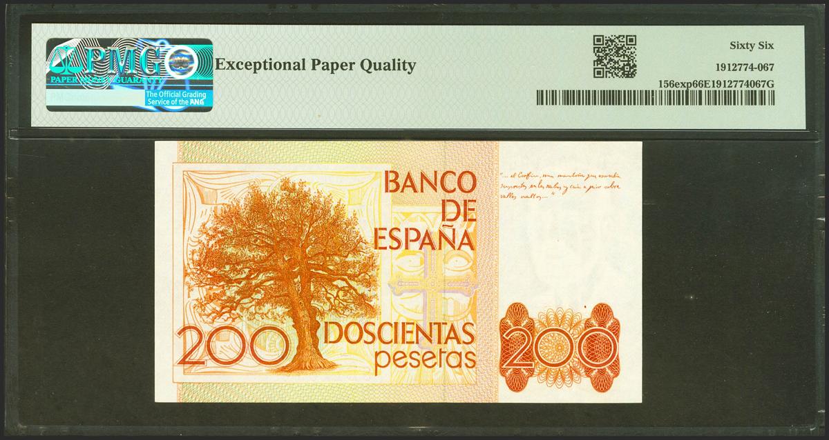 200 Pesetas. 16 de Septiembre de 1980. Serie especial 8B. (Edifil 2021: 480c, Pick: 156exp). SC. Encapsulado PMG66EPQ.