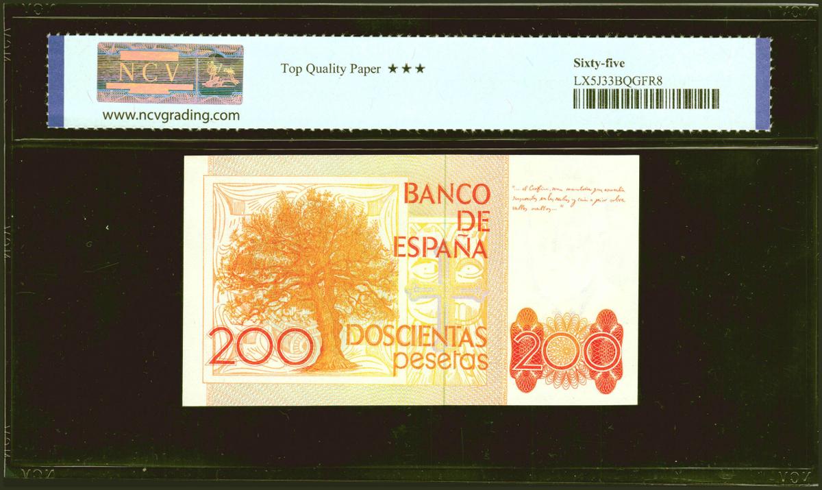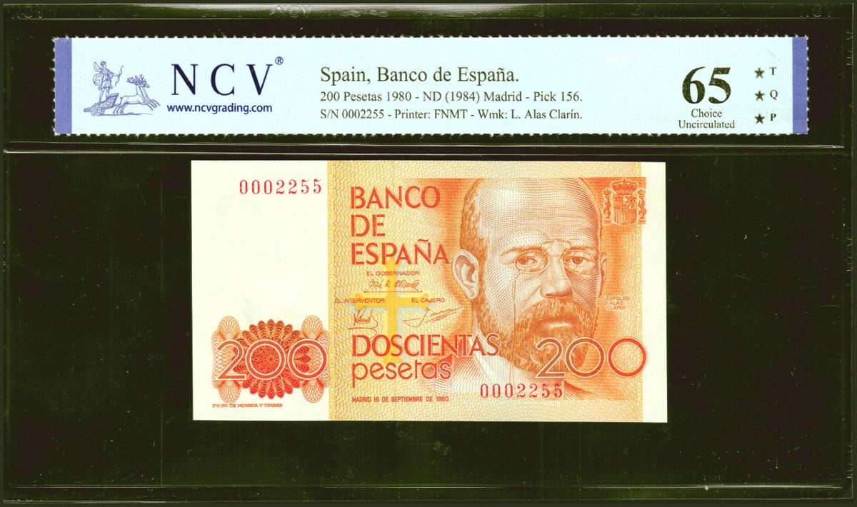 200 Pesetas. 16 de Septiembre de 1980. Sin serie y numeracion muy baja. (Edifil 2021: 480). SC. Encapsulado NCV65TQP.