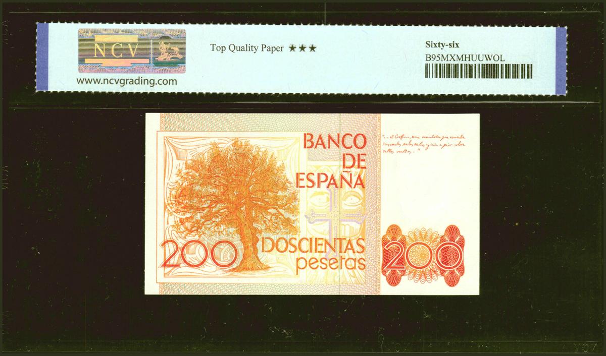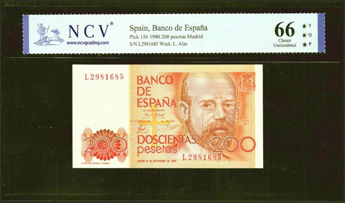200 Pesetas. 16 de Septiembre de 1980. Serie L. (Edifil 2021: 480a, Pick: 156). Apresto original. SC. Encapsulados NCV66TQP.