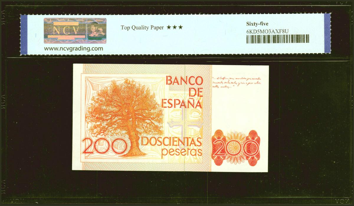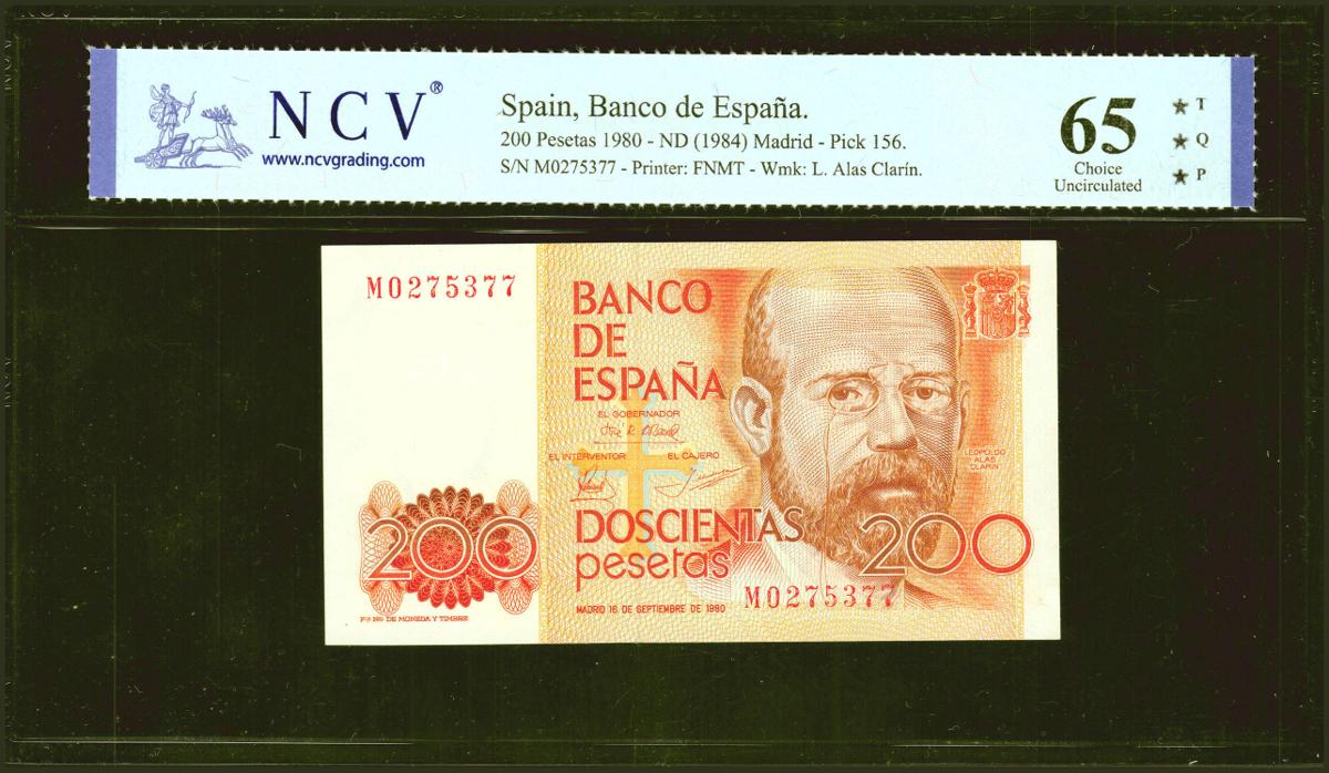 200 Pesetas. 16 de Septiembre de 1980. Serie M, última serie emitida. (Edifil 2021: 480a). Apresto original. SC. Encapsulado NCV65TQP.