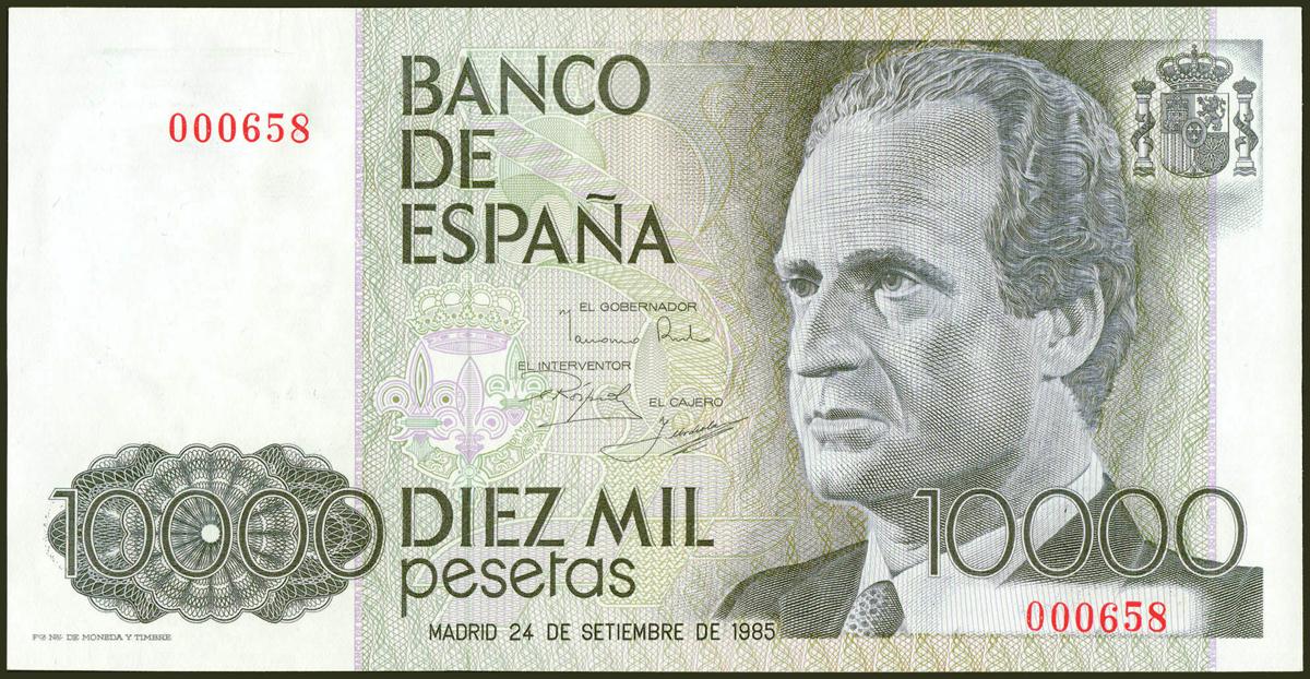 10000 Pesetas. 24 de Septiembre de 1985. Sin serie y numeracion bajísima (000658). (Edifil 2021: 481). SC-.