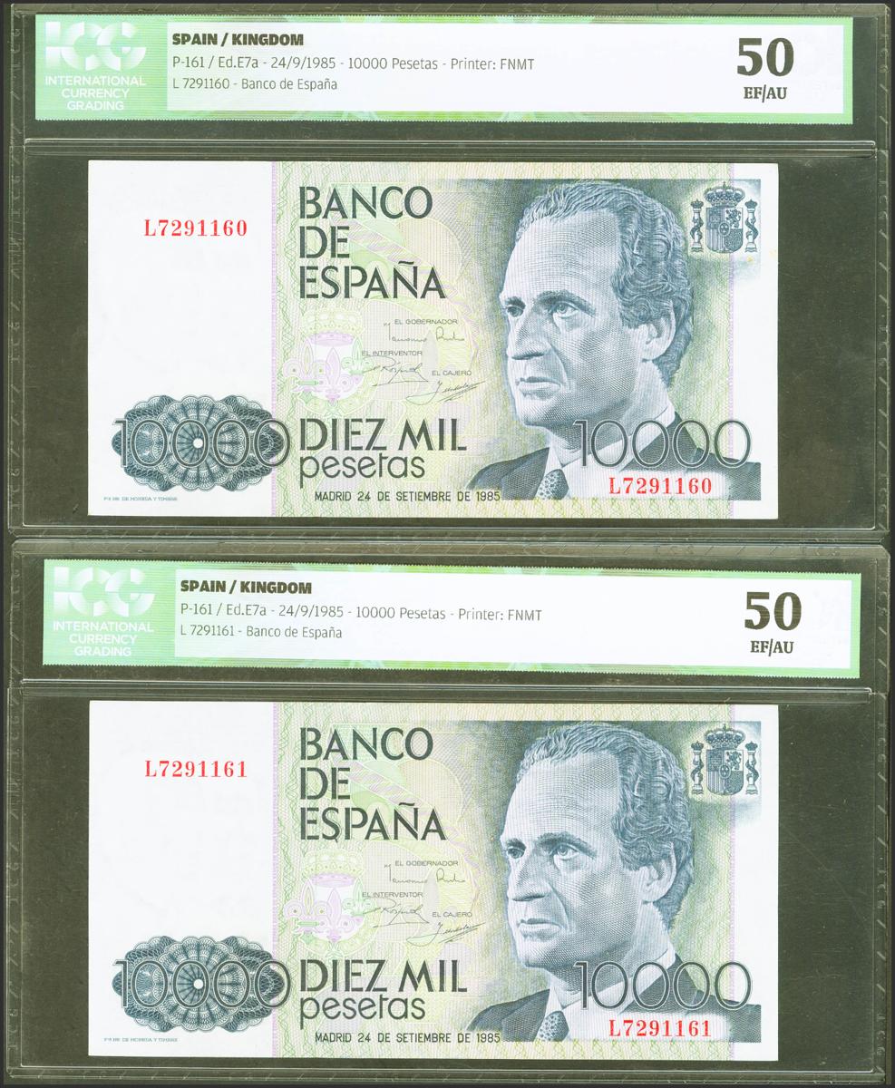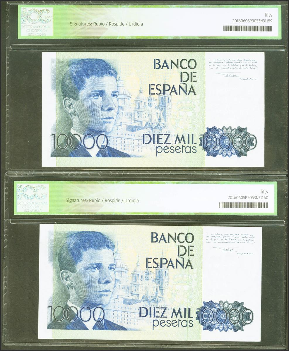 10000 Pesetas. 24 de Septiembre de 1985. Pareja correlativa. Serie L. (Edifil 2017: 481a). EBC. Encapsulados ICG50, ambos.