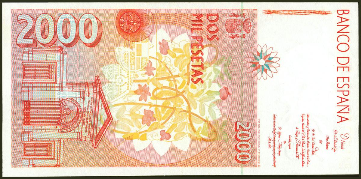 2000 Pesetas. 24 de Abril de 1992. Sin serie y numeración bajísima. (Edifil 2021: 482). SC.