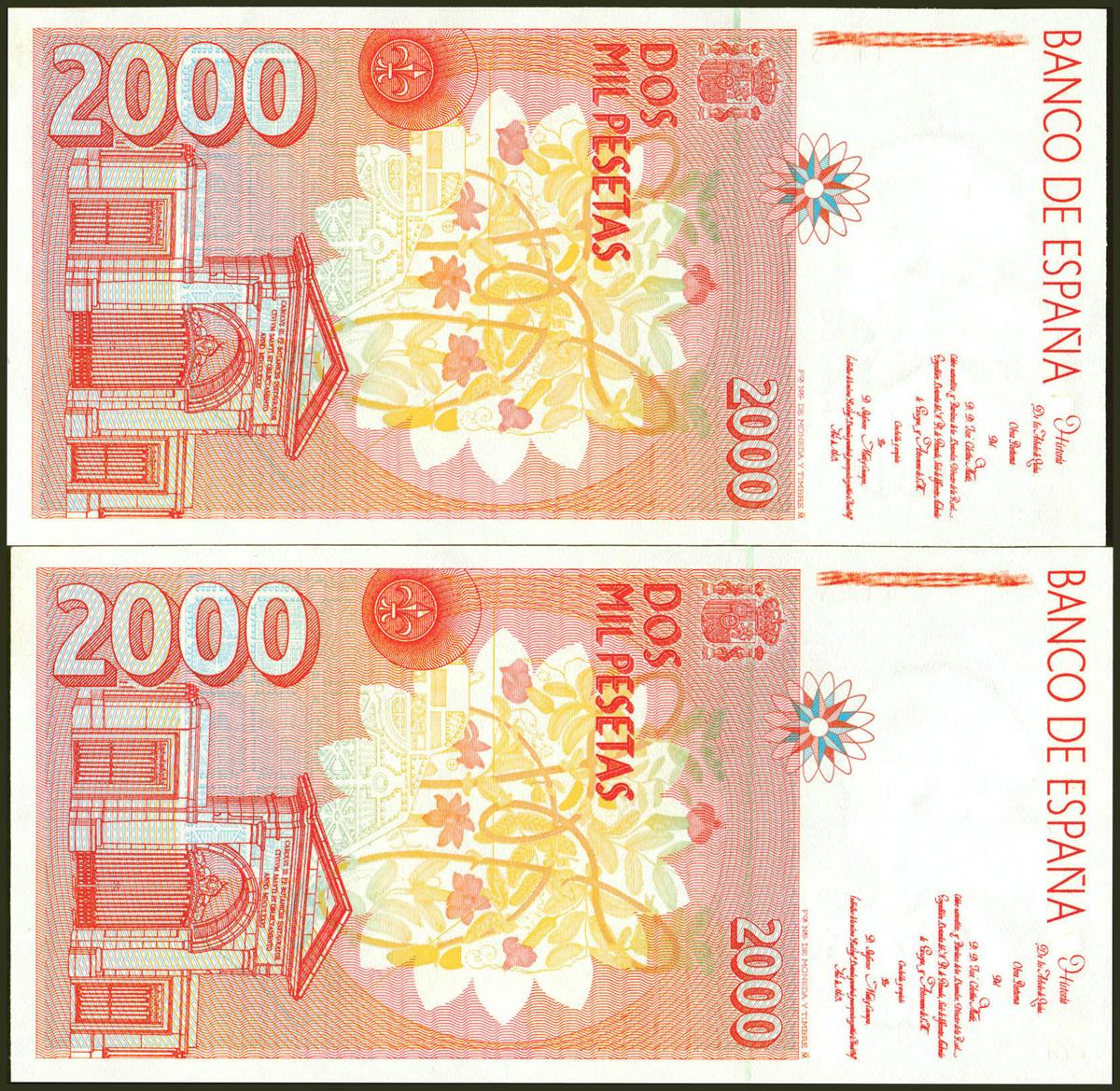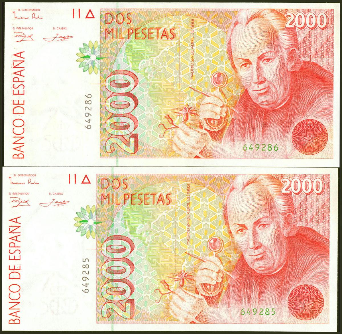 2000 Pesetas. 24 de Abril de 1992. Pareja correlativa. Sin serie. (Edifil 2021: 482). SC.